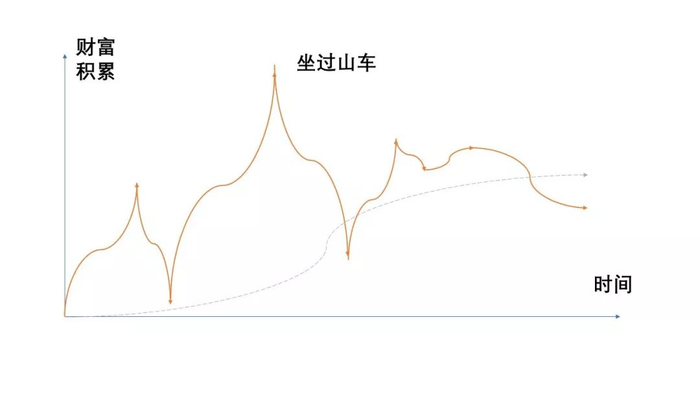 坐过山车型:用投机的思维追逐短期暴富的机会,财富呈随机大幅波动。
