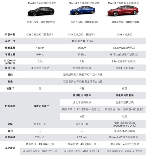 2020年,Model 3标准续航升级版率先国产化,经数次调价后,不含充电桩价格降至补贴后人民币29.9万元。本次国产Model 3长续航版,补贴后售价33.9万元,续航里程高达668km,相比于Model 3的445km,相当于多花4万元可以提升223km的续航里程以及高级版内饰。业内普遍预测,该款车型将取代此前标准续航升级版成为最受欢迎的Model 3车型。
