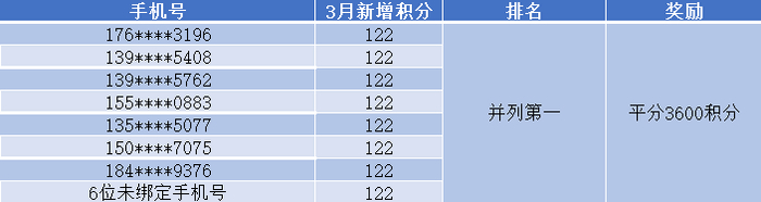 3月31日,月度积分赛第十赛季结束。本赛季积分增长前13位新鲜出炉,他们都拿到了第十赛季的122满分噢~快来看看榜单有没有你吧!将来,我们会推出更多积分玩法,让各位粉丝更快速累积积分,兑换心水好礼。