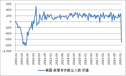 美国非农就业人数是美国非农业人口的就业数据,由美国劳工部每月公布一次,反应美国经济的趋势,数据好说明经济好转,数据差说明经济转坏。最新公布的美国3月非农就业人数减少70万人,已经直逼次贷危机时期最差的情况。而市场人士分析,3月就业数据仍然低估了新冠疫情和防控措施对美国经济的影响。就业数据的萎靡反映了美国当前经济下滑压力巨大。此外美国经济主要靠消费拉动,而消费和劳动者的收入密切相关,因而非农数据的恶化或预示着美国未来一段时期的消费能力也不会有所改善。