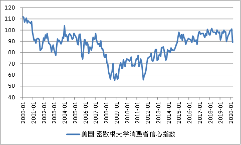 我们可以将美国就业数据与美国的消费者信心指数相互验证。密歇根大学消费者信心指数是衡量美国经济活动中消费者信心水平的指标,它是一个领先指标。3月密歇根大学消费者信心指数创下40个月的低点,且随着海外疫情的持续发酵,后续可能会持续恶化。