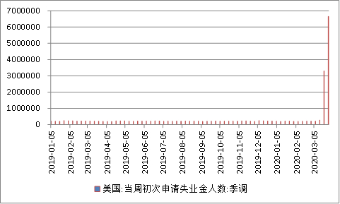 美国就业数据方面,3月28日当周美国首次申请失业救济金人数从前周的328.3万攀升至664.8万,大幅高于预期,创历史新高。过去两周累计有近1000万人申请失业救济(2000-2020年周均值仅为34万),表明劳动力市场正承受着巨大压力。