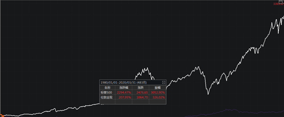 很多时候大家会说,从长期来看黄金作为投资品并不成功,尤其是1980年以来,黄金投资相对于权益投资的收益率不值一提。(1980.1.1-2020.3.31黄金价格涨幅207.95%,同期标普500指数涨幅2294.47%)