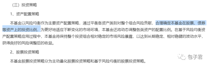 这只基金是怎么做投资呢,这只基金的投资目标是“通过风险均衡方法进行资产配置,积极管理,力求有效控制风险,实现基金资产长期持续增值”。注意,这里的关键词是“风险均衡方法”。