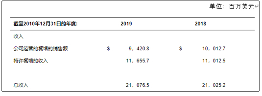 而麦当劳的收入来源却不同于海底捞。麦当劳财报显示,2019年麦当劳营收210.77亿美元,其中主要收入来源于经营餐馆和特许餐馆这两个部分,营收分别为94.2亿美元和116.6亿美元,占总营收的45%、55%。