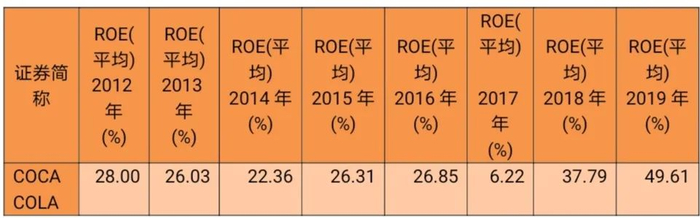 表2:可口可乐最近8年净资产收益率同比增长情