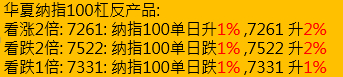7261,华夏Direxion纳斯达克100指数每日杠杆(2x)产品。