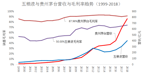 数据来源:贵州茅台与五粮液年报,区间1999-2018
