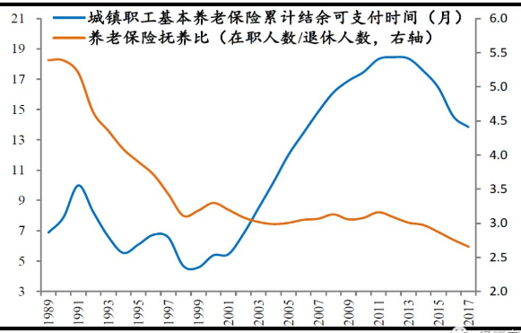 图中可以清楚看到,不管是抚养比还是养老保险结余的转折点都出现在2013年之后。