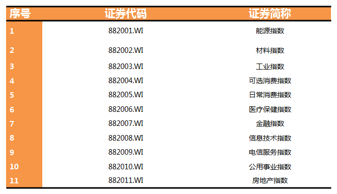 窄基主要是行业或者主题指数,可以根据Wind一级行业分成:能源指数、材料指数、工业指数、可选消费指数等11种指数,当然还可以继续细分至二级行业指数、三级行业指数等,在此就不做赘述。