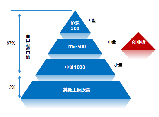 从配置的角度而言,创业板指可以和大盘价值型的指数进行搭配配置。