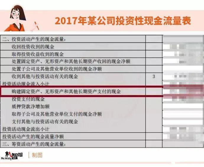 经营活动产生的现金流量净额,在财报中一目了然,而下面的“购建固定资产、无形资产和其他长期资产支付的现金”就是公式中的“资本开支”。二者相减,就是我们要求的“自由现金流”。