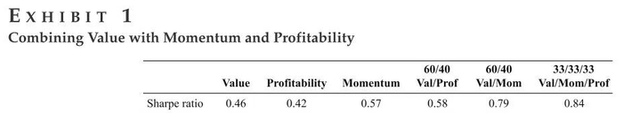 基于风险和行为的理论都提供了合理的依据支持未来的持续价值溢价。来自大几十个金融市场和不同资产类别的大量样本外数据证实,投资者对价值投资的认识至少在三年后还不会没有减弱的迹象,价值溢价不可能很快消失。价值因子与其他因子相结合,会带来巨大的多元化效益。