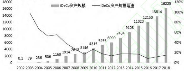 iDeCo是具有税收优惠的退休储蓄账户,规模占比尚小,但发展速度较快。2018年iDeCo规模达1.62万亿日元,占GDP的0.3%,规模增速呈下降趋势,2018年接近20%。