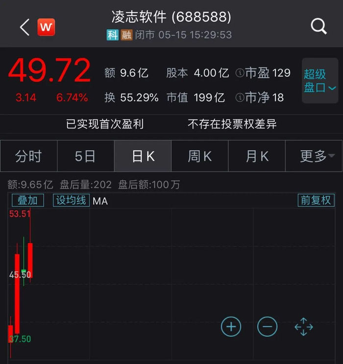 5月11日,近1000名“集邮党”押注的凌志软件(688588)正式登陆科创板,上市首日,开盘大涨264.66%,报41.90元/股。截至盘后,报41.93元/股,相较于11.49元/股的发行价涨幅达到264.93%。