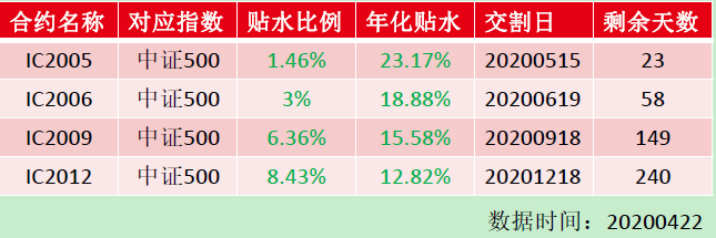 《红周刊》记者获得的一份银河证券北京某营业部制作的“中证500期现套利”业务推介材料显示,目前中证500股指期货各个合约均有不同程度的贴水(股指期货价格<指数)。譬如截至4月22日,期货IC2005对应中证500指数贴水1.46%,交割日为5月15日、年化23.2%,期货IC2006对应中证500指数贴水3%,交割日为6月19日、年化19%。在交割日之前,如中证500指数上涨X%,则IC2005将上涨(X% 1.46%)。基于此,投资者可以做多IC2005,做空中证500指数(或成分股)。