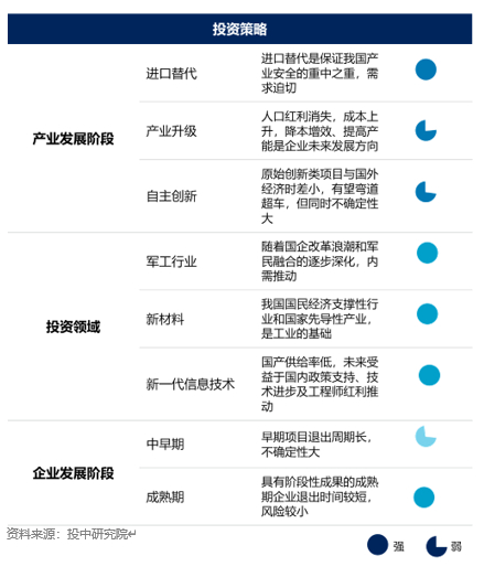 从投资阶段上来看,具有一定规模和阶段性成果的成熟期企业的投资风险相对较小。不同于离市场近、产品爆发快的消费互联网企业,高端制造企业通常研发时间长,前期投入成本高,盈利周期长。私募股权基金的存续期有限,一般为7-8年左右,考虑到退出需求,投资机构投资具有一定规模或者阶段性成果的处于中后阶段的高端制造企业,相对来说,退出周期会较短,退出风险较小。
