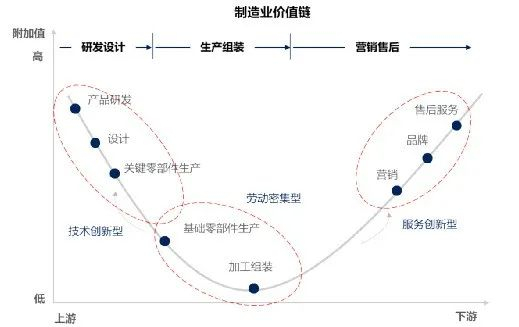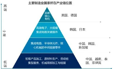 我国制造业总量占全球的比重多年来稳居世界第一,但从产业链分工来看,我国制造业长期处于中低端。我国制造业发展主要通过人口红利、原材料等要素驱动发展,凭借廉价的劳动力,以较低的产品成本取得市场地位。从世界制造业产业链分工来看,产业链高端主要由美国、德国等发达国家把控,我国制造业位于产业链的中低端,主要从事原材料的基础生产加工以及零件组装,产品利润低,附加值不高,在关键器件和核心技术方面处于劣势。