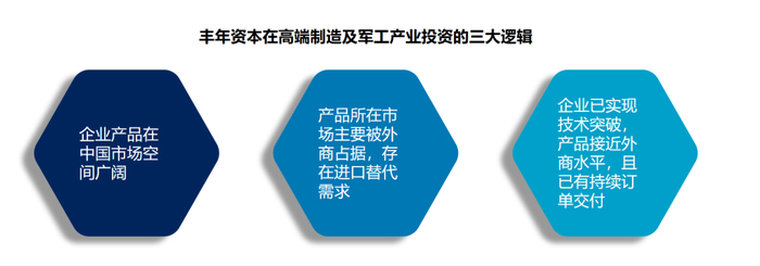 丰年资本所投资的多家企业都具有以下三个特点:企业产品在中国市场空间广阔;产品所在市场主要被外商占据,存在进口替代需求;产品已实现技术突破,产品接近外商水平,且有持续订单交付。正是基于以上三大逻辑,丰年资本始终挖掘并投资拥有核心技术及核心产品、具有较好成长性的优秀高端制造企业,致力于用现实化管理手段推动中国高端制造业快速发展。