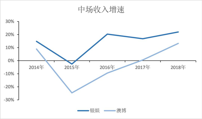 澳博中场收入230.80亿港元,同比2017年增长12.13%。银娱中场收入274.87亿港元,同比2017年增长22.97%。