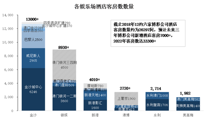 非博彩也对博彩业有巨大的带动作用。旅客大多会选择过夜酒店周边的娱乐场进行博彩娱乐,因此非博彩业中酒店设施较好,酒店客房数较多的公司将会在提高博彩收入方面有一定优势。