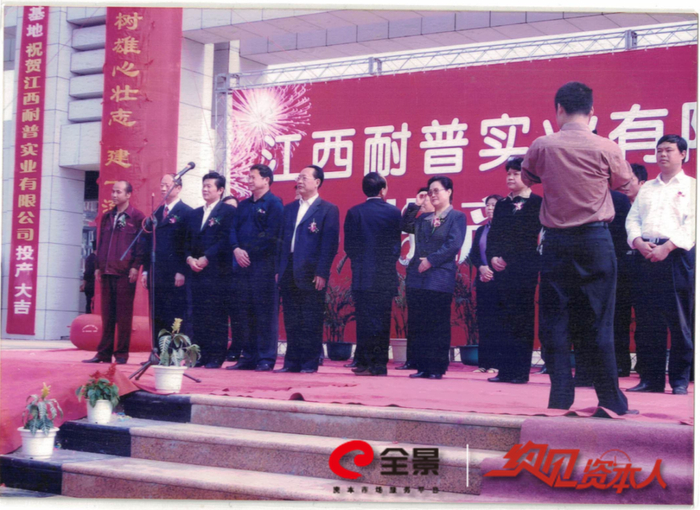 郑昊(左一)在江西耐普实业有限公司投产典礼上