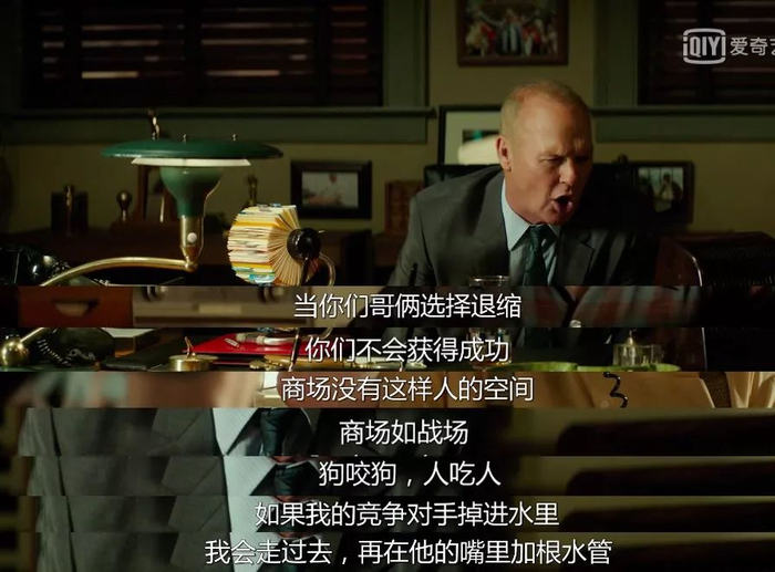 但是这些工作经历,让雷锻炼出一套非常厉害的销售能力。影片一开头,就是雷“先有鸡还是先有蛋”的销售演说,展现出他强大的嘴上功夫。说服麦当劳兄弟,也是靠的这项能力。