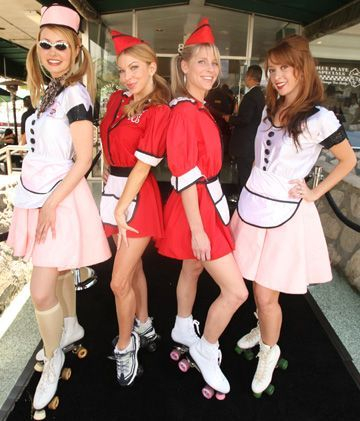 上世纪50年代,美国很流行汽车快餐店。开在汽车方便停的地方,顾客不用下车,由服务员将餐送到车上。