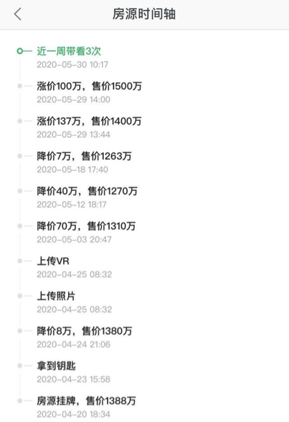 一套华尊大厦210平米的三居,4月20日上架,到5月19日之前,共降价四次,共计125万元。5月29日下午半小时之内报价连涨两次,一共涨了237万元。