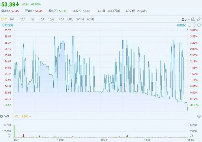 6月11日,济民制药的成交量突然大增,盘中惊现大额买单,瞬间创出历史新高,分时图都未留下痕迹,随后大幅回落,全天成交金额超15.5亿元,换手率8.88%。