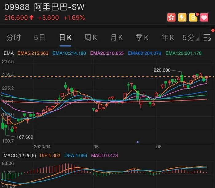 而阿里巴巴最近三个月的涨幅在27%左右,远低于腾讯的涨幅。