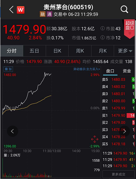 不过当天,白酒指数、网络游戏指数等概念股涨幅居前。股王茅台再度刷出历史新高,市值突破 1.86万亿。