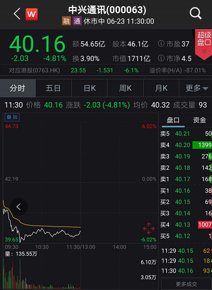 其中,澄清芯片传闻以及爆出大股东减持消息的中兴通讯,当天盘中大跌超6%以上,短短两日,市值已经蒸发超百亿。