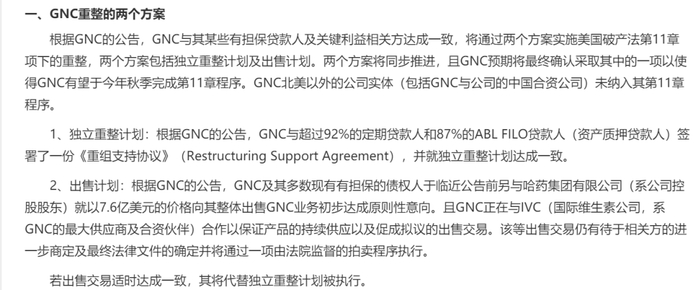 GNC破产重整的2个方案: