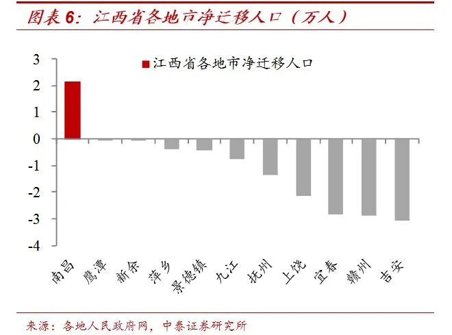 从省内流动的情况来看,也和2018年类似,人口继续向省会和“双子星”类核心城市集中。在每个省份内部,只有省会等少数城市是人口净流入的,大多数城市都面临人口净流出的压力。比如江西、山西、河南、湖北、陕西、甘肃等地,基本上都只有1-2个城市人口在净流入,其余城市人口均在净流出。