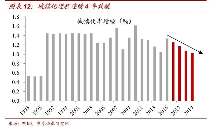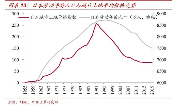 长期来看,人口是影响房价的关键因素。像日本在90年代以前房价一路上涨,对应的也是劳动年龄人口增长、城市化率快速提升的时代。而90年代以后房价明显回落,这其中固然有地产泡沫破灭的因素,但为何这么久以来房价却再也没回去呢?人口或是关键,日本劳动年龄人口在90年代中期达到峰值,之后便开始持续下行;而90年代以后城市化率的速度也大幅放缓,也就是说支撑房价的人口基本面已经发生了明显转变。