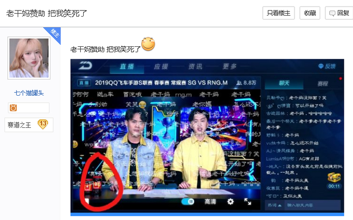 在qq飞车手游吧里,有老干妈当时赞助的直播。