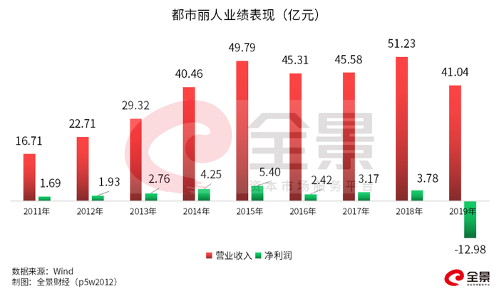 但野蛮扩张未能让都市丽人持续上升。2019年,都市丽人的业绩突然暴雷,当期营收规模降至41亿元,净利润则亏损近13亿元。