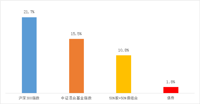 50%股+50%债:50%沪深300指数收益率+50%中债新综合财富(总值)指数收益率,下同。