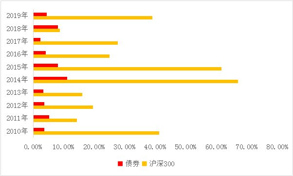但从收益潜力来看,上述时间段内, 债券 的年度最大涨幅为2.33%-11.19%,而 沪深300 的年度最大涨幅达到了8.69%-67.07%。