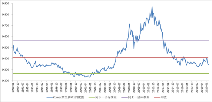 那么到了现在1800元每盎司这个位置,黄金究竟还贵不贵呢?Comex黄金价格和M1的比值这个指标依然处于在历史的低位,最近一年的时间,美国的货币增长量是30%,在这个环境之下带来的黄金价格或水涨船高,这是驱动黄金价格上涨的核心原因。
