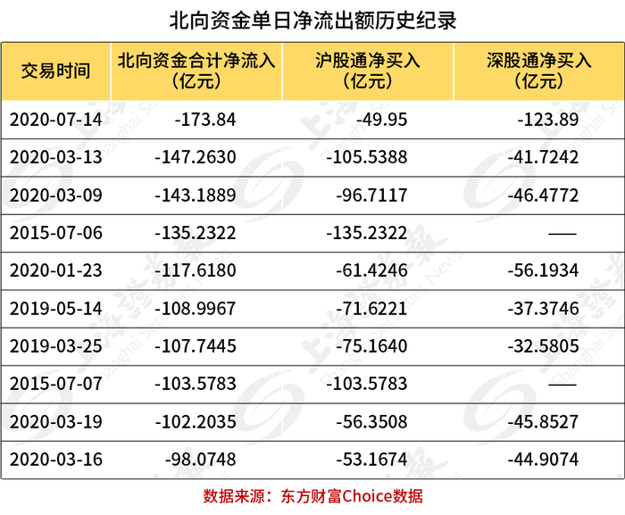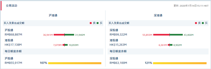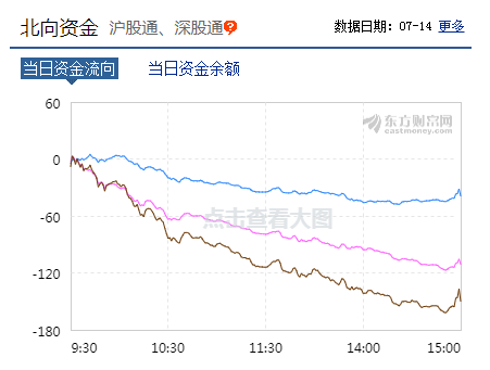 7月14日,港交所数据显示,北向资金合计净流出173.84亿元,其中沪股通净流出49.95亿元,深股通净流出123.89亿元。