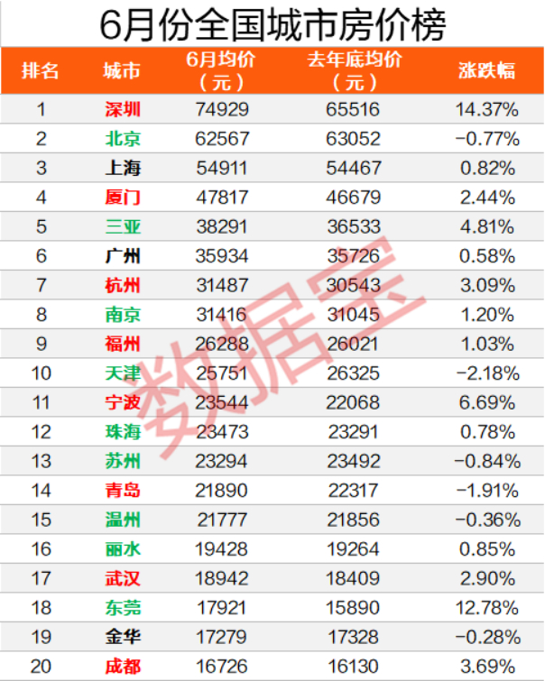 中国房地产业协会主办的中国房价行情网《2020年上半年全国城市房价涨幅榜》数据显示,今年上半年二手房价上涨中位数2.2%左右,而深圳的二手房价相比去年年底上涨了14.37%。