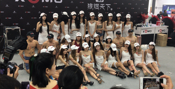 深圳的大爷们,平时喜欢拿着长枪短炮去深圳湾公园拍鸟。但在2018年4月14日这一天,他们扛着各种高精尖设备进驻深圳会展中心。 这里正召开国际电子烟展。会场里不仅有电子烟产品、吐烟圈表演,更有每家厂商请来的模特,穿着三点式在人群中展示着胸部和臀部上的广告,观众用手机扫码就可以下单,此外甚至还有钢管舞表演[1]。