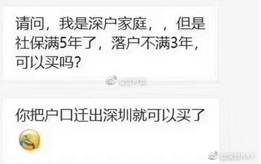 有网友调侃建议:“户口迁出深圳可能可以。”
