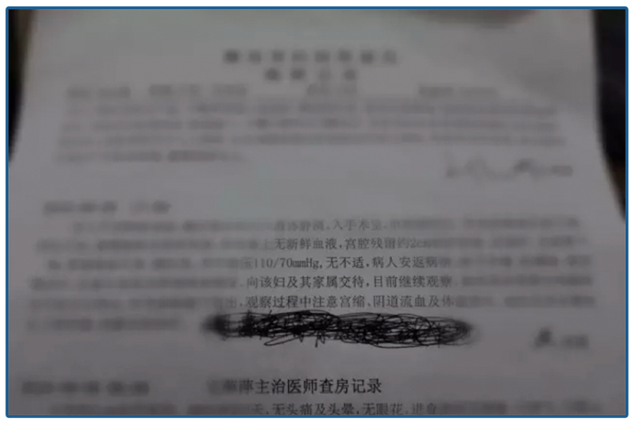 而这件事情最后很快就反转了,原来,纱布是手术后必要的抢救过程中留下,手术当时就明确告知了产妇与家属,纱布需要留在体内半月后取出,当时产妇和家属也签了字。谁知道没过几天就不认账,要求医院赔偿30万元,还溜到医院办公室偷把病程记录上的签字划掉: