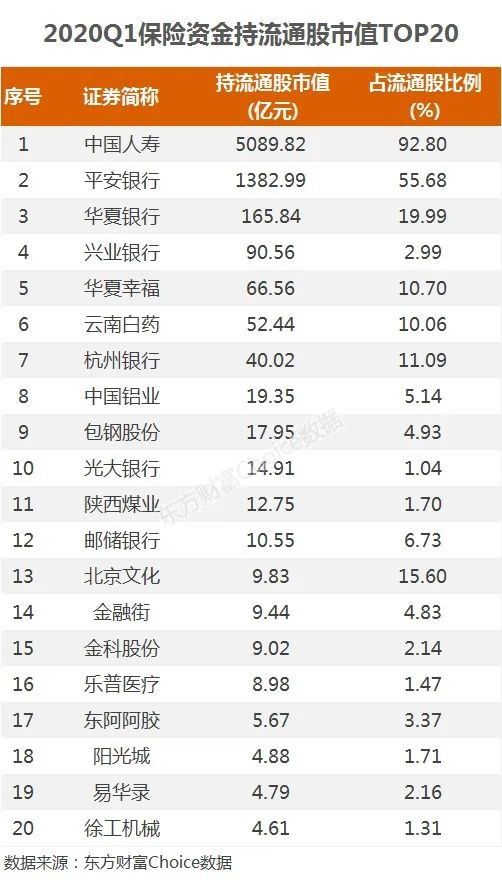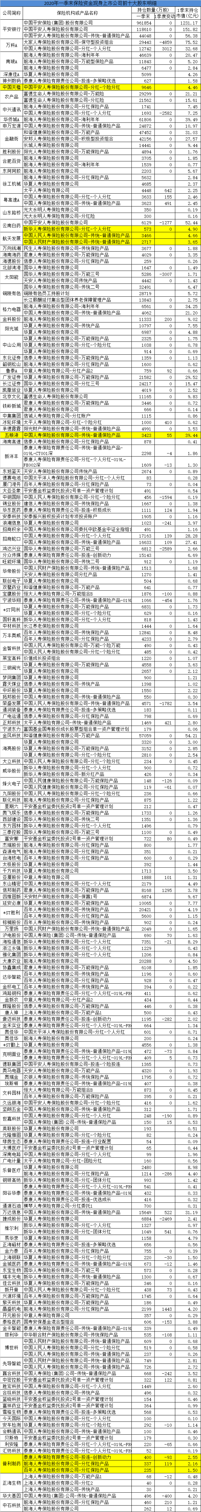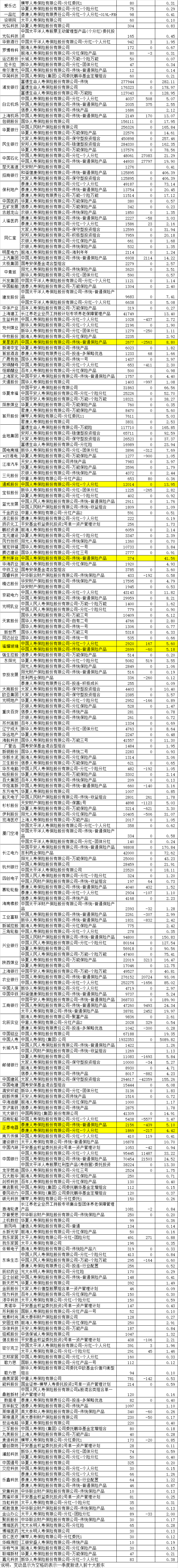 10、险资重仓哪些股票?