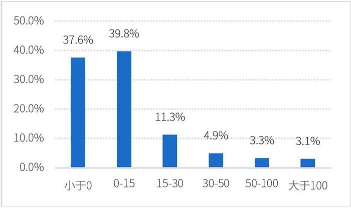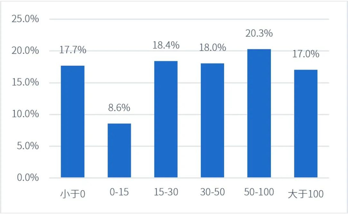 而A股市场个股的市盈率分布主要集中于15-100倍之间。