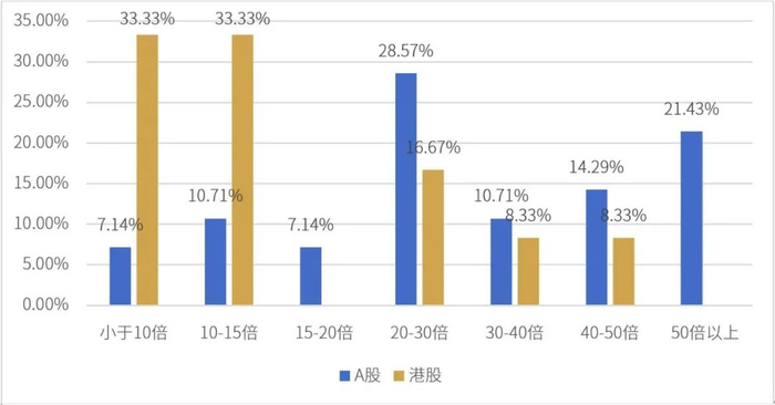 分行业来看,港股估值位于30倍以上的行业个数仅17%,而A股估值30倍以上的行业个数高达46%。港股目前估值最高的医疗保健业(43倍),在A股只能排到第十位,与A股医药生物行业56倍的估值也相差30%。