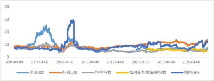 从整体看,香港恒生指数的估值水平长期低于其他主流指数: